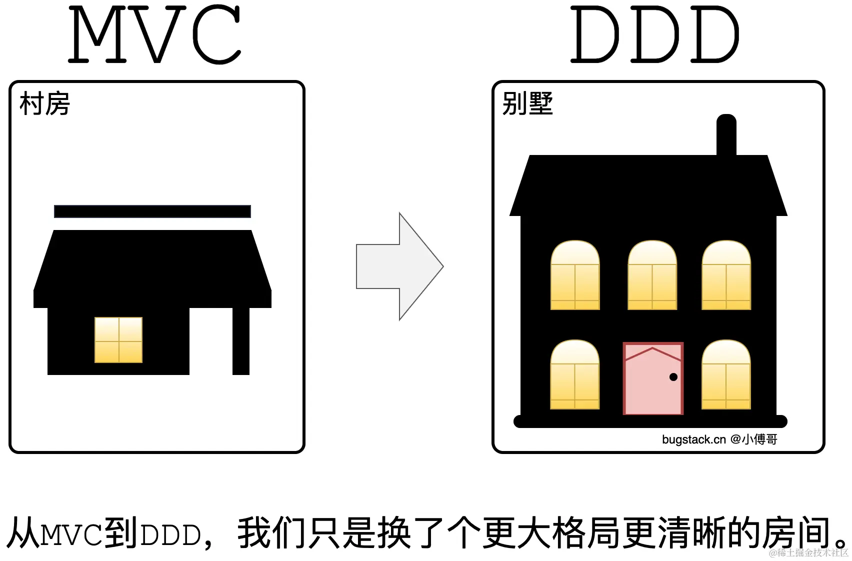 DDD 好比就是好三室一厅的格局,每个房间都有自己的主人(领域)。