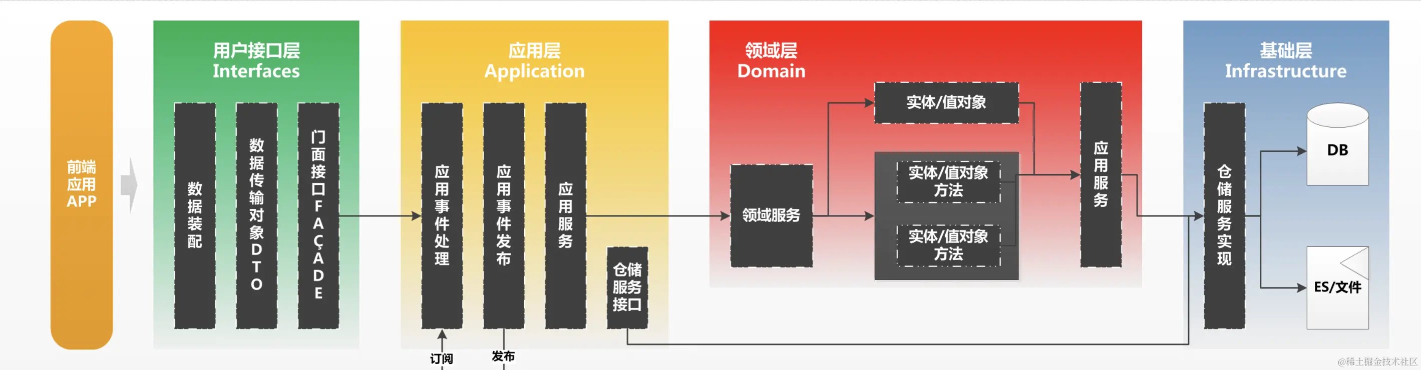 - 应用层的服务包括应用服务和领域事件相关服务。