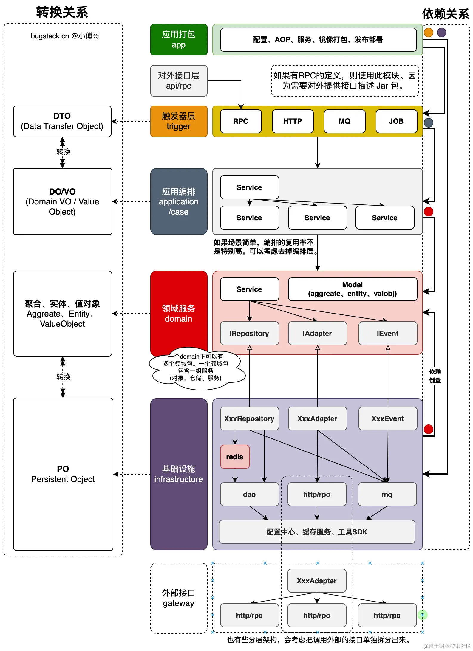 - 类型定义 - gateway:对于外部接口的调用,也可以从基础设施层分离一个专门的 gateway 网关层,来封装外部 RPC/HTTP 等类型接口的调用。
