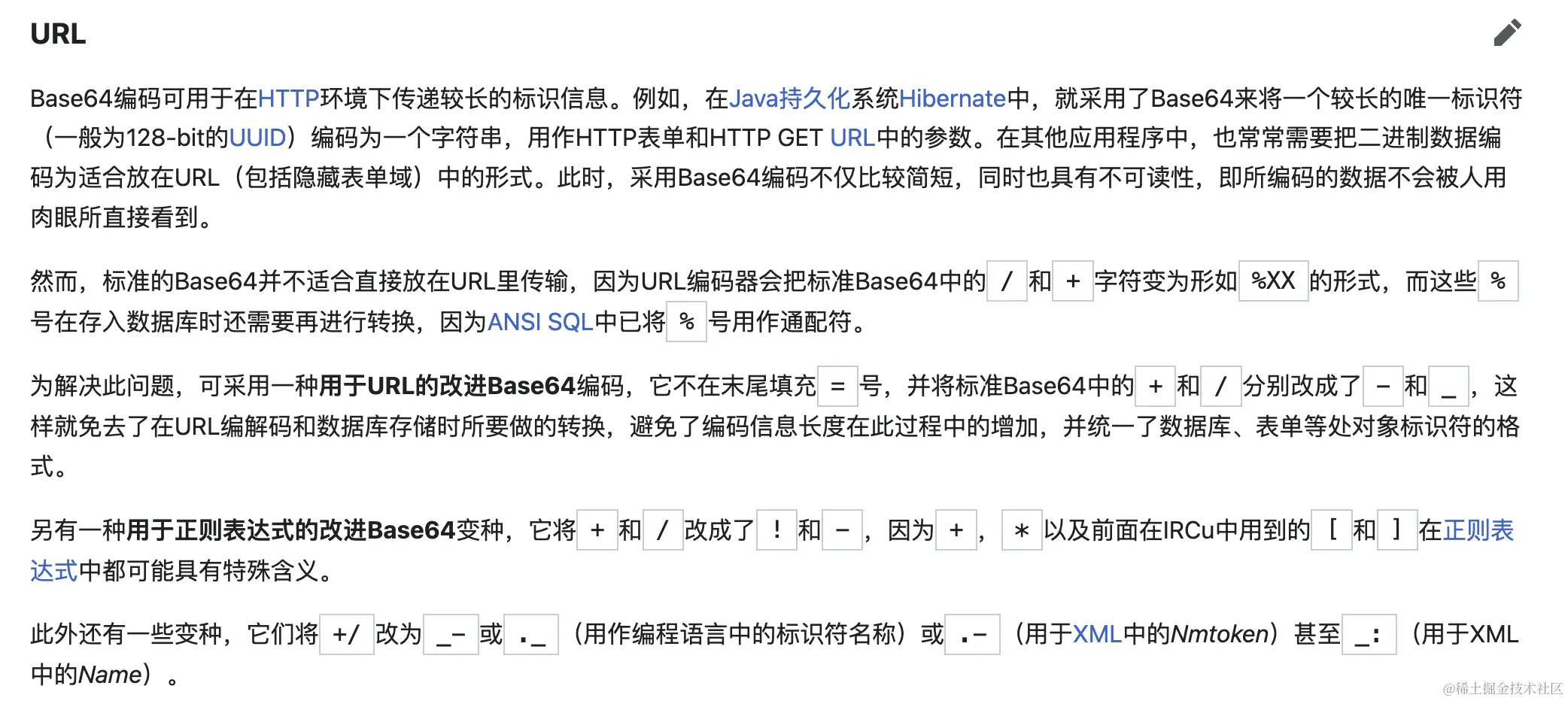 然而,标准的Base64并不适合直接放在URL里传输,因为URL编码器会把标准Base64中的/和+字符变为形如%XX的形式,而这些%号在存入数据库时还需要再进行转换,因为ANSI SQL中已将%号用作通配符。