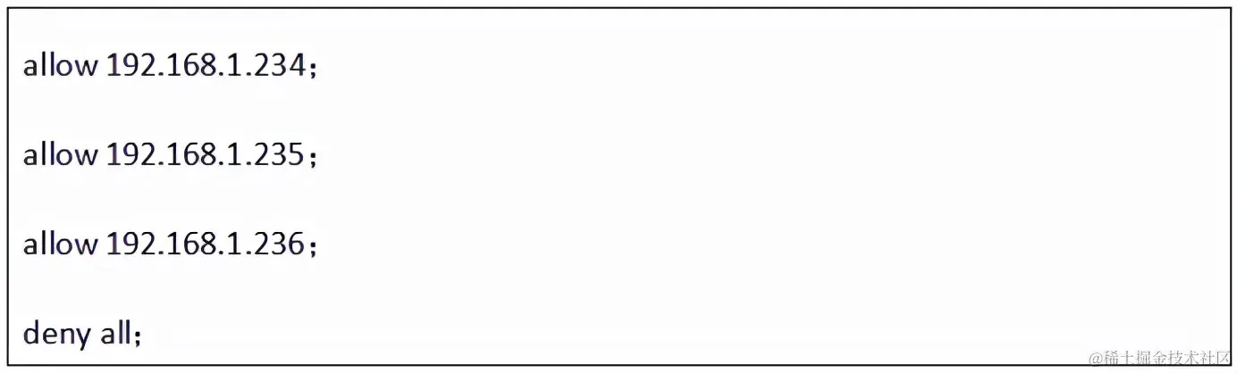 在这个配置下,234、235和236的ip访问不了服务器,会显示403 Forbidden,而其他ip都可以访问。