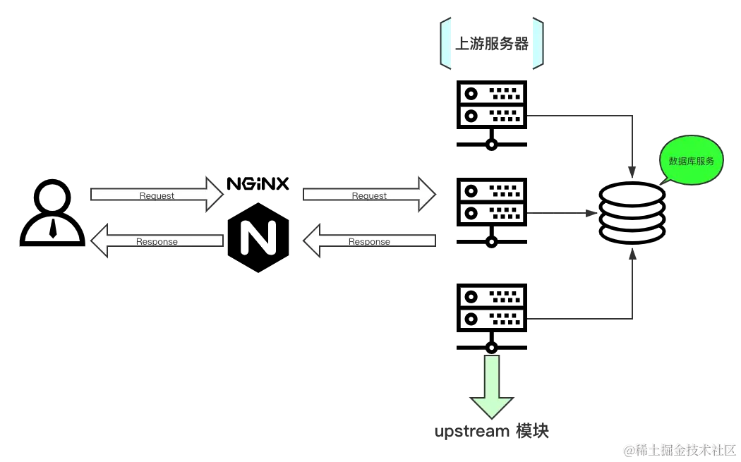 - upstream 配置后端服务器具体地址,负载均衡配置不可或缺的部分;