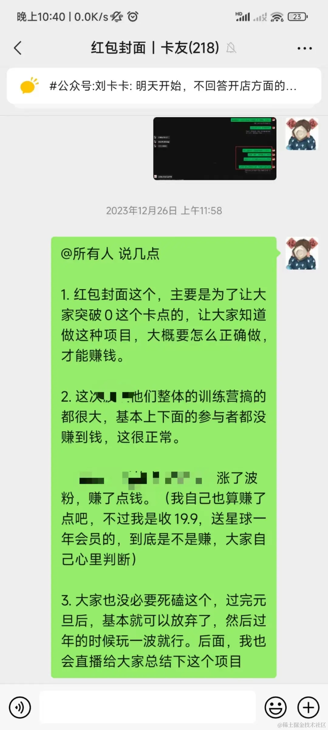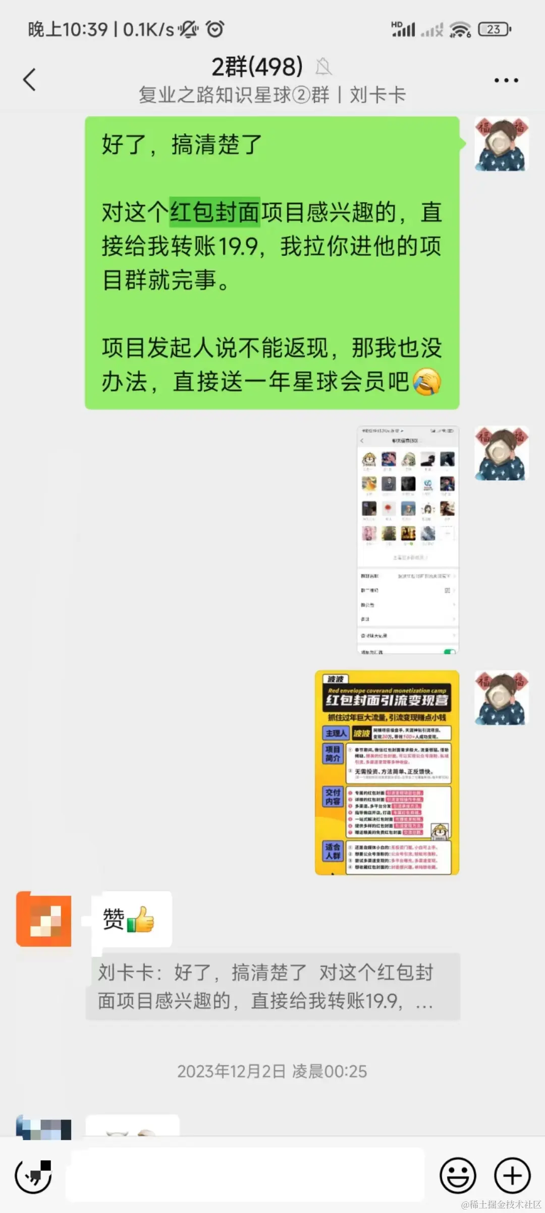 起因是有卡友在群内咨询一个社群外的大佬组织的红包封面训练营的可靠性,是不是值得报