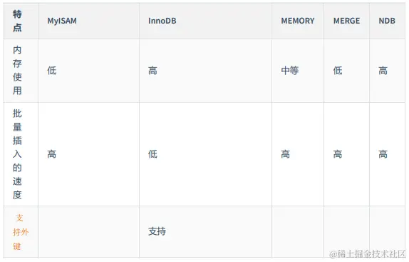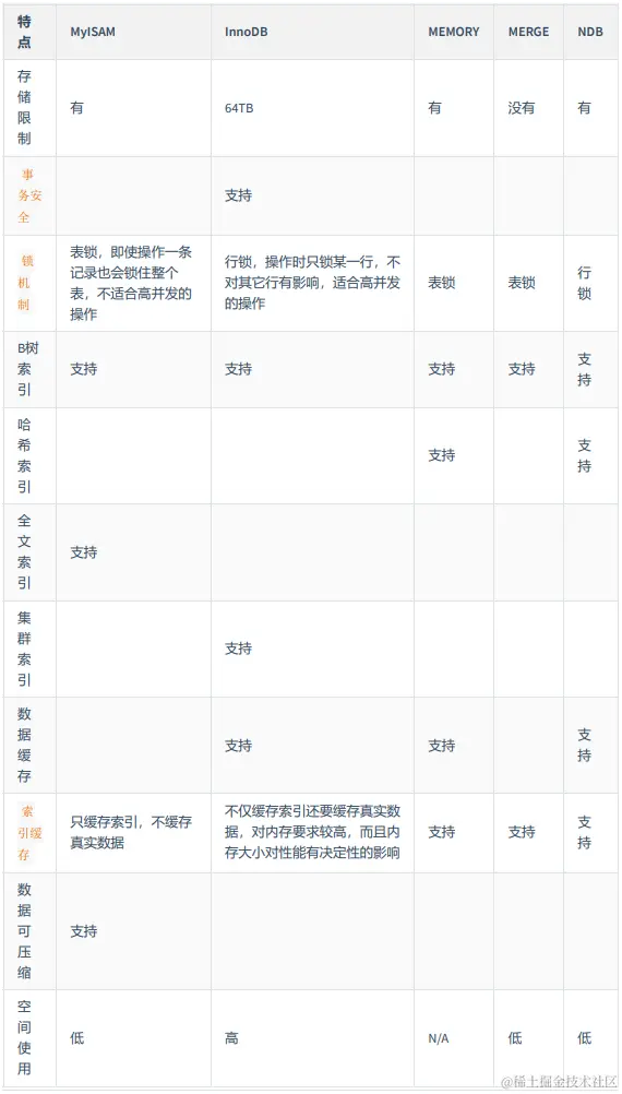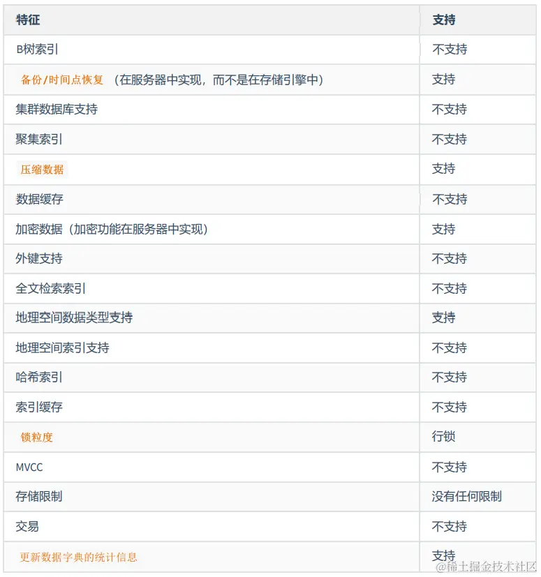 其实这些东西大家没必要立即就给记住,列出来的目的就是想让大家明白不同的存储引擎支持不同的功能。