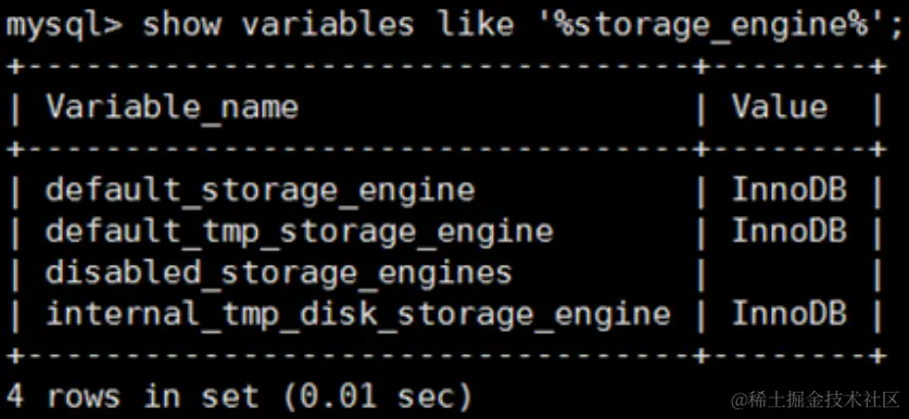 show variables like '%storage_engine%';