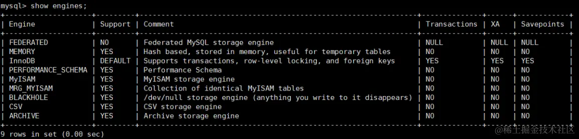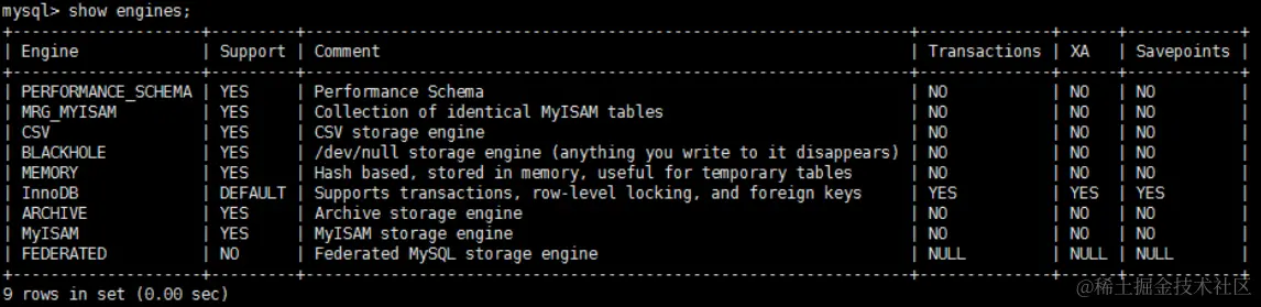- 查看默认的存储引擎