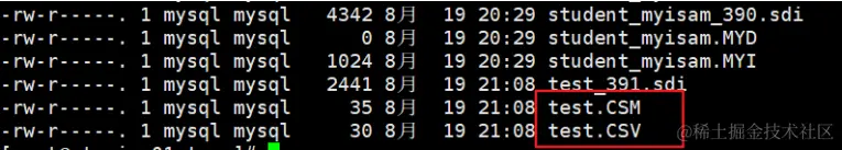 创建CSV表还会创建相应的元文件 ,用于 存储表的状态 和 表中存在的行数 。此文件的名称与表的名称相 同,后缀为 CSM 。如图所示