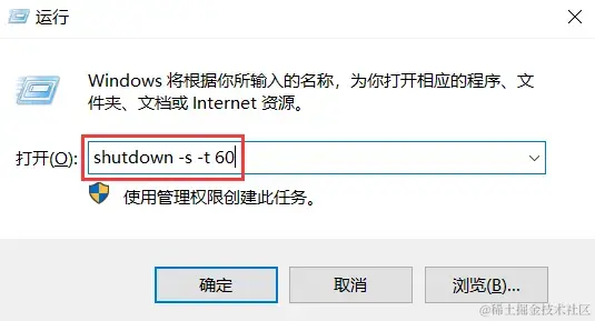 【Win】 和 【R】 键打开运行窗口,输入 【shutdown -s -t 60】 ,并点击 【确定】 按钮,电脑将在60秒后自动关闭。