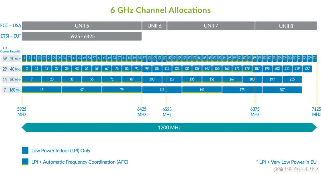 Wi-Fi 6E networks will provide increased capacity with 14 additional 80 MHz channels and 7 additional 160 MHz channels operating in the 6 GHz band, while leveraging the following existing 802.11ax capabilities: