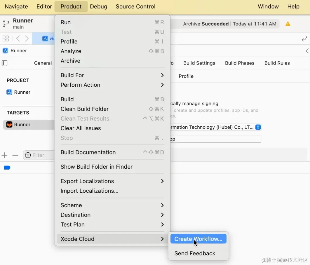 - Xcode——》Product——》Xcode Cloud——》Create Workflow,一直点下一步即可