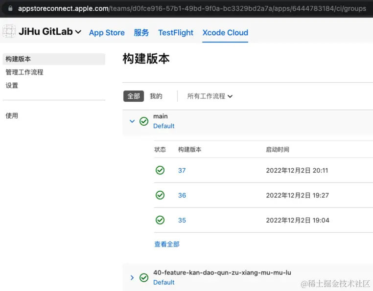 - 提交代码到极狐 GitLab,会立即触发 Xcode Cloud 打包。