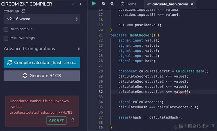 - 向 GPT 提问关于 Circom ZKP 编译器的错误或警告问题
