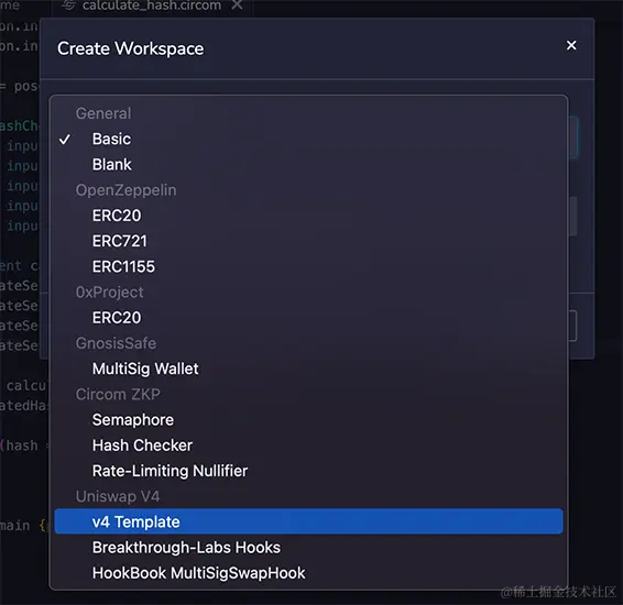 如果您想在文件浏览器中加载此模版,点击弹出菜单并选择创建。您将会在Uniswap V4的部分看到它。