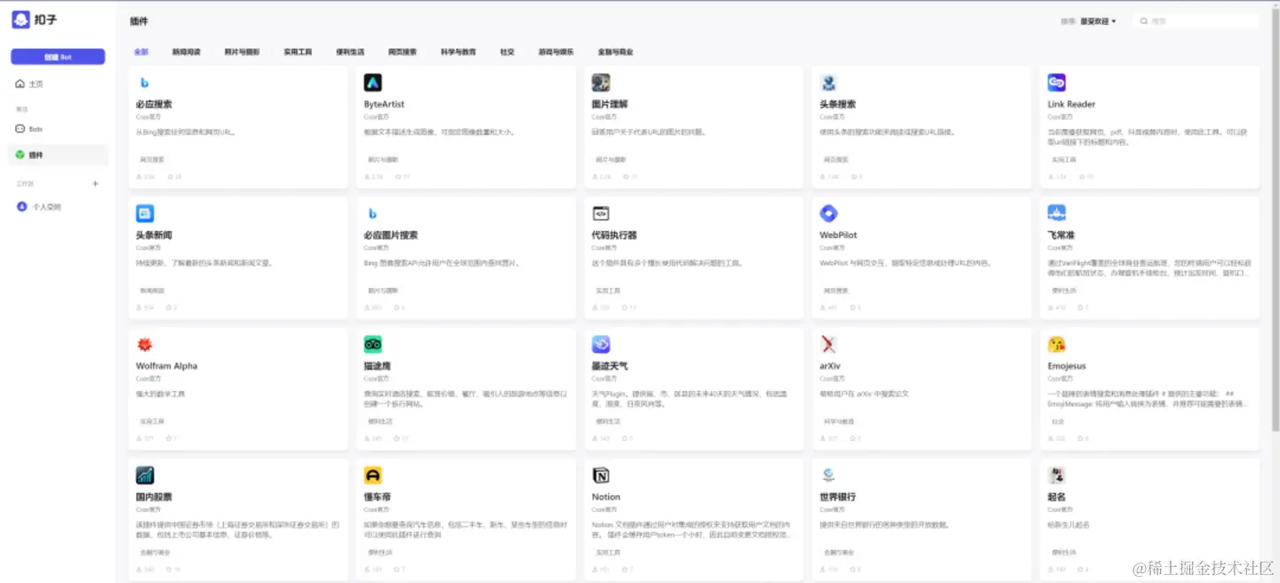 扣子平台的真正魅力在于其可定制性。用户可以通过简单地调整预设的模板,结合后台丰富的插件资源,创建出独特的机器人。扣子的特点包括其广泛的插件库,超过60种插件可用于增强机器人功能,涵盖资讯、旅行、办公和图片理解等领域。平台还支持用户创建自定义插件,将现有API集成到机器人中。