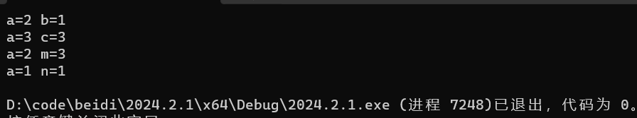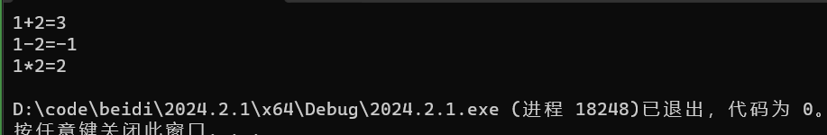 printf("1+2=%d\n1-2=%d\n1*2=%d\n", c, m, n);