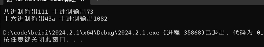 printf("十六进制输出%x 十进制输出%d\n", b, b);