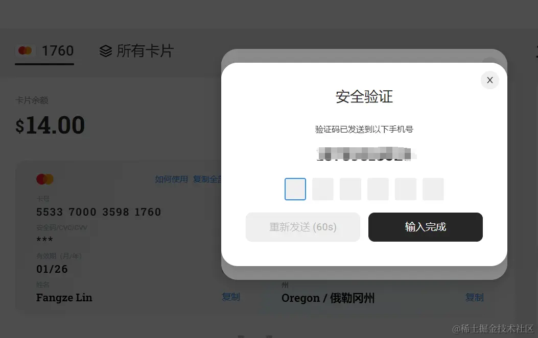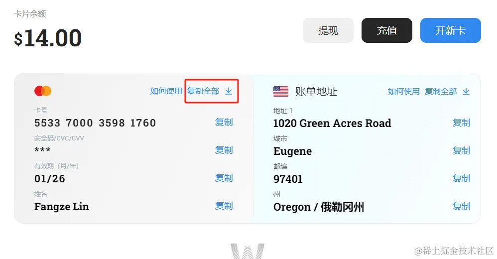 上面需要的每一项信息,都可以直接在虚拟卡网页上看到,直接复制过去即可: