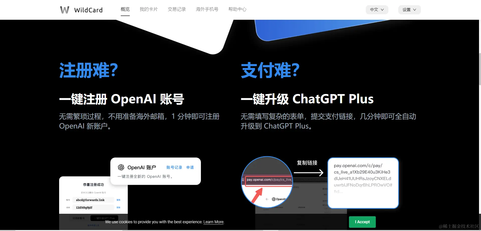 - 为了成功把绑定 OpenAI 或开通 ChatGPT Plus 会员可以使用 WildCard 提供的“远程环境”登录和绑定账号,切记未充值不要去绑定,因为绑定信用卡时平台会进行扣费验证,如果余额为零就会照成绑卡失败和增加消费失败率。