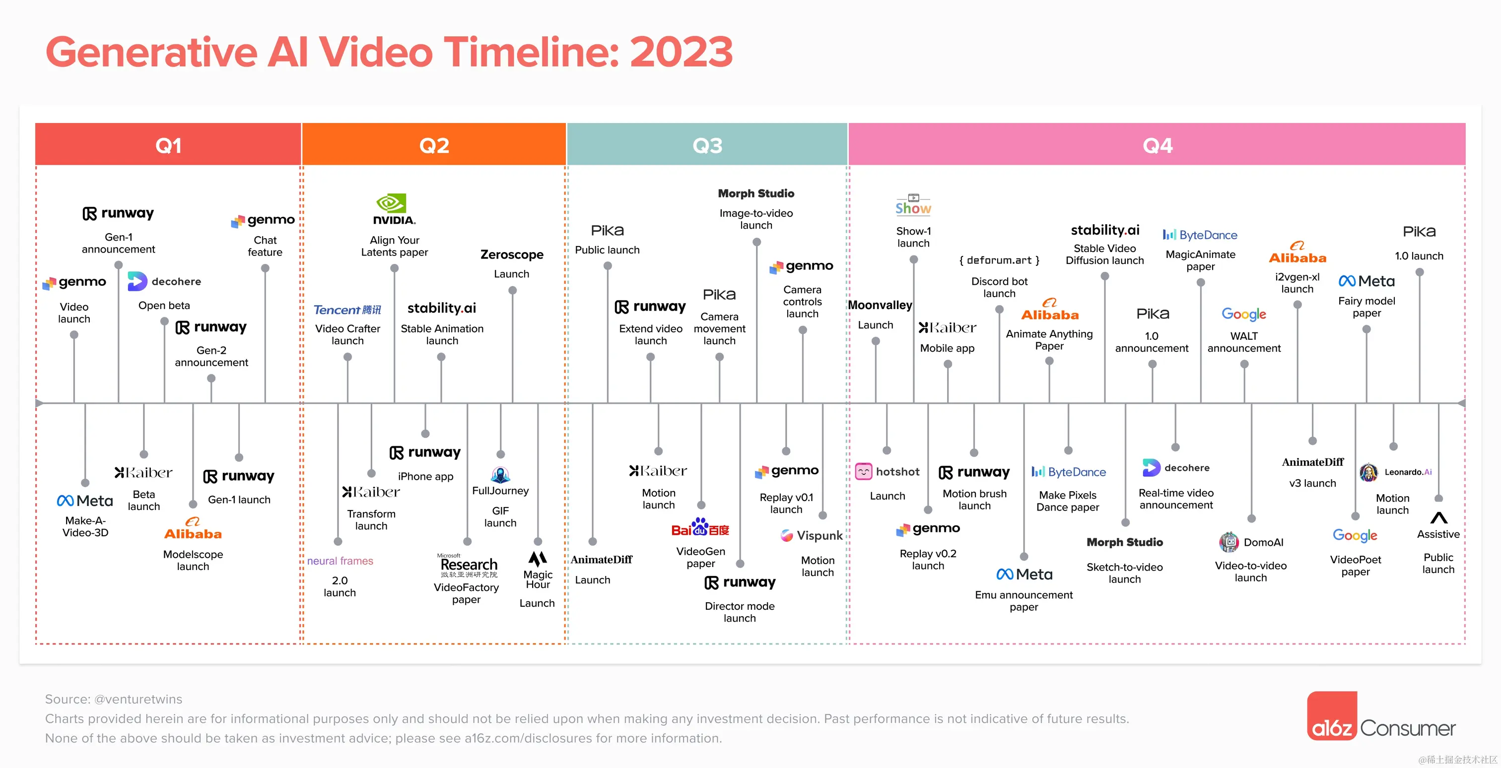 2023年初,还没有公开的文本到视频模型;年底,全球数百万用户已经能使用几十种视频生成的产品和模型了。这一年AI视频技术的确出现了大爆发。