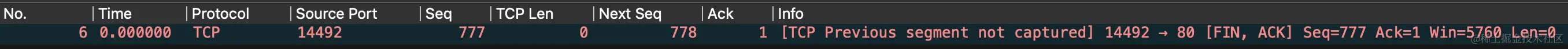 不是的,一般来说确实nextSeq=Seq+Len。只有两种情况例外,那就是三次握手中的SYN包和四次挥手中的FIN包。而这6号包就是这两种情况中的一种——FIN包。