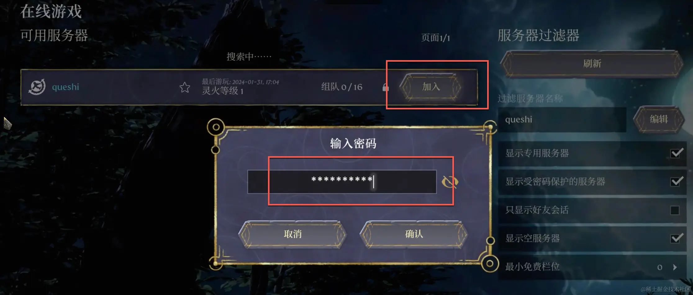 设置游戏密码,防止陌生玩家加入你的服务器。