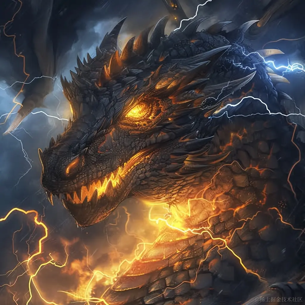 艺术品呈现一只拥有强大闪电眼的龙,风格为4K,安德烈·希库特风格,超高清图像,深灰和琥珀色,艾伯特·古德温风格,犬科核心,布莱恩·希奇