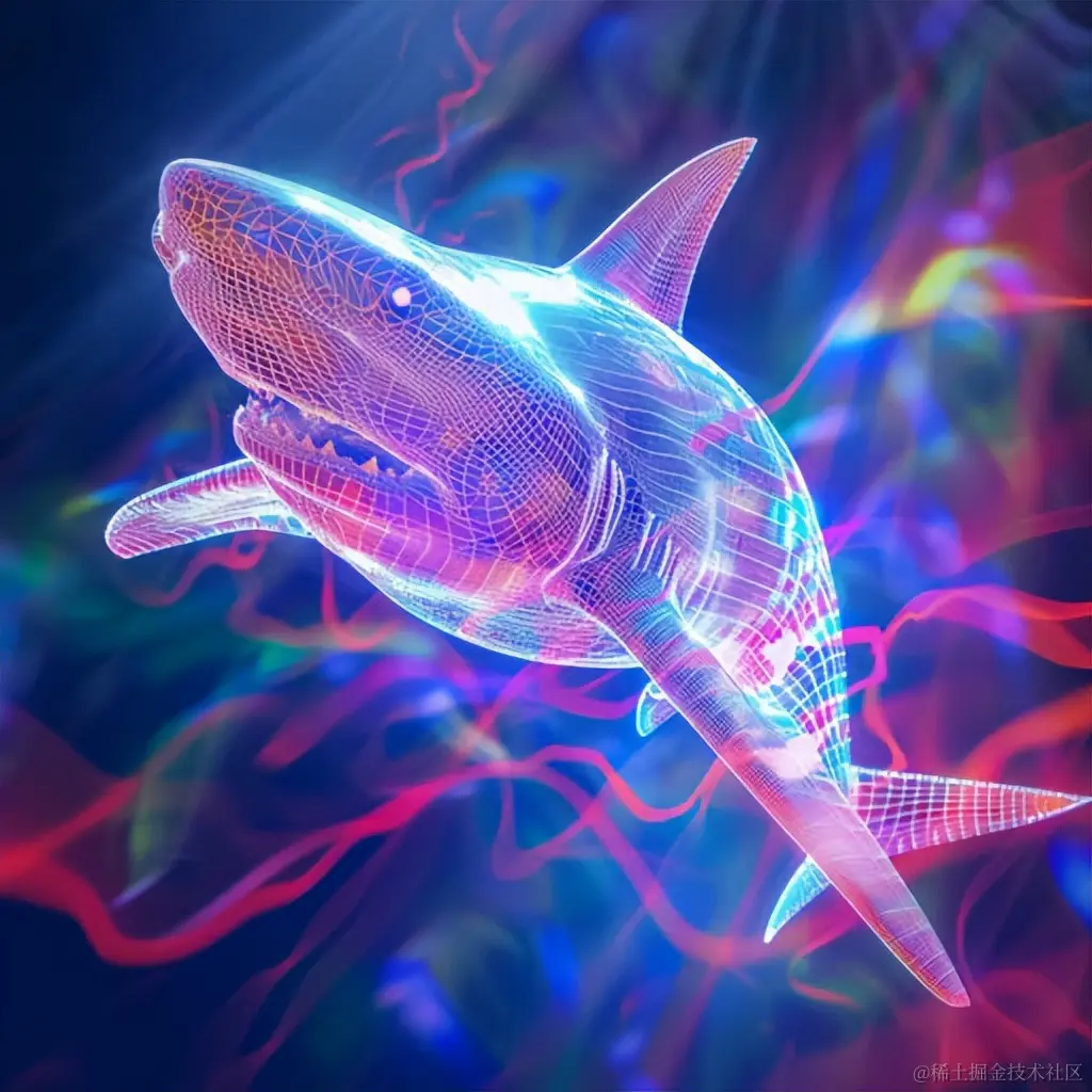 3D全息鲨鱼高清动画库存照片,奥托·皮恩风格,Sketchfab