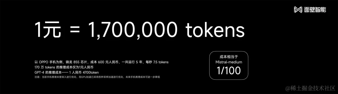 - 省钱秘籍: 面壁MiniCPM模型支持在CPU上运行推理,在消费级显卡上进行高效训练与微调。经过Int4量化处理后,模型仅占用2GB的内存空间,大大降低了部署成本,使得端侧AI应用成为可能。面壁智能表示,每170万tokens的端侧推理成本仅为1元人民币,显著低于市场上同类产品。