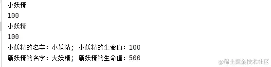System.out.println("新妖精的名字:" + newGobin.getName() + "; 新妖精的生命值:" + newGobin.getHP());
