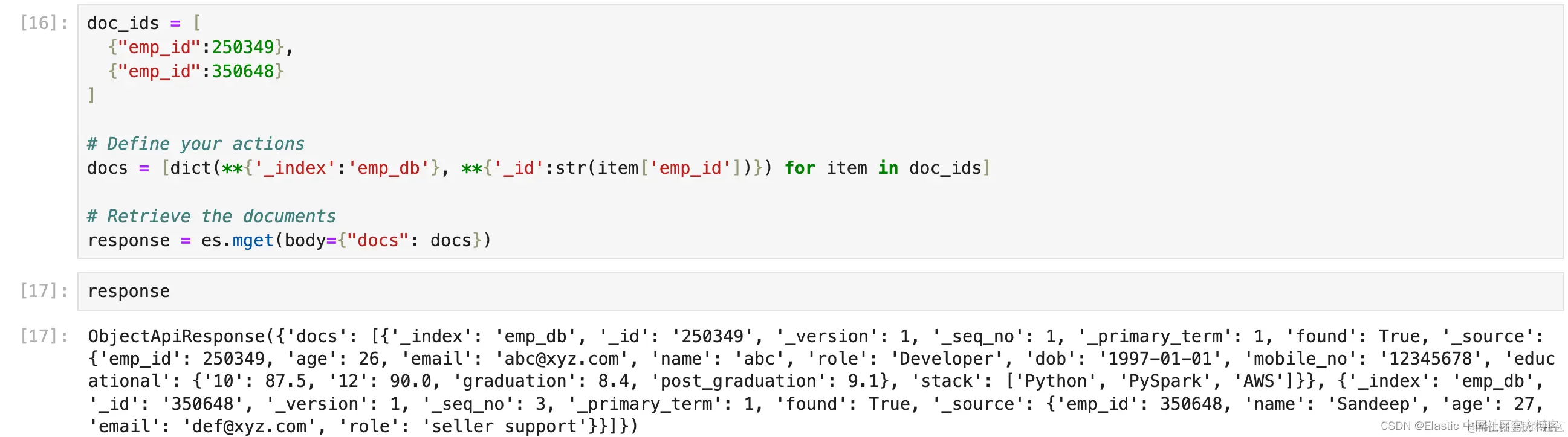 7. docs = [dict(**{'_index':'emp_db'}, **{'_id':str(item['emp_id'])}) for item in doc_ids]