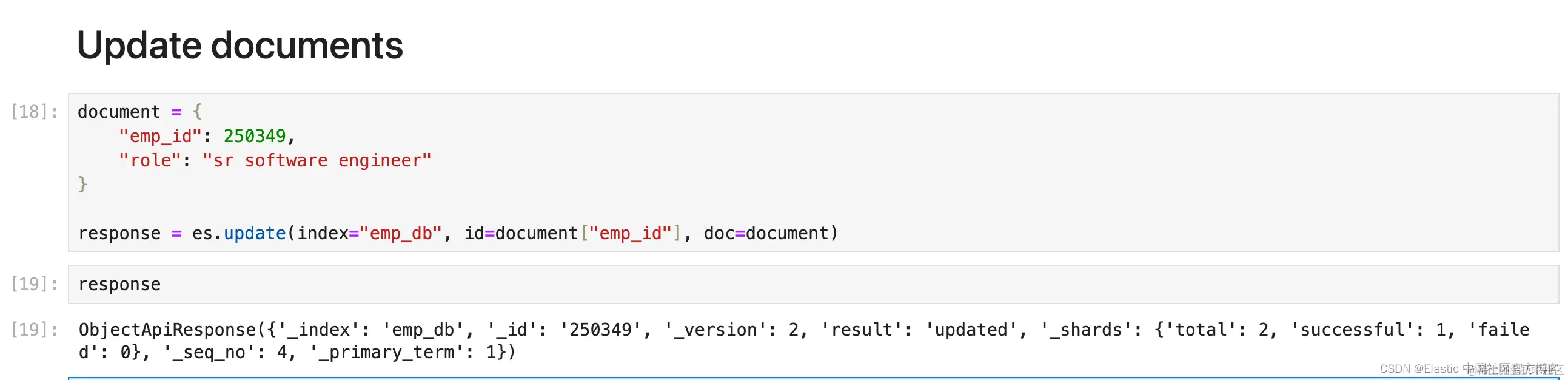 6. response = es.update(index="emp_db", id=document["emp_id"], doc=document)