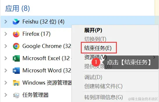 步骤2:在任务管理器中切换到【进程】选项卡,找到占用内存较大的程序,右键选择 【结束任务】 。