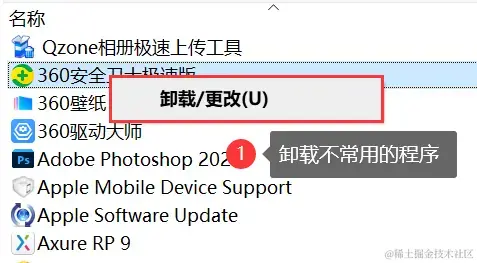 方法二:卸载不常用的程序以释放内存