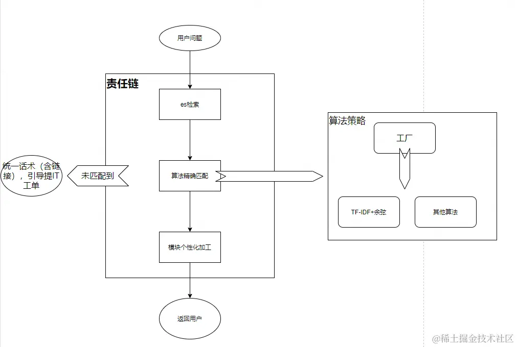 上述为此功能的粗略设计步骤,简易功能实现模式如下:责任链:es-->算法-->模块;工厂策略:算法