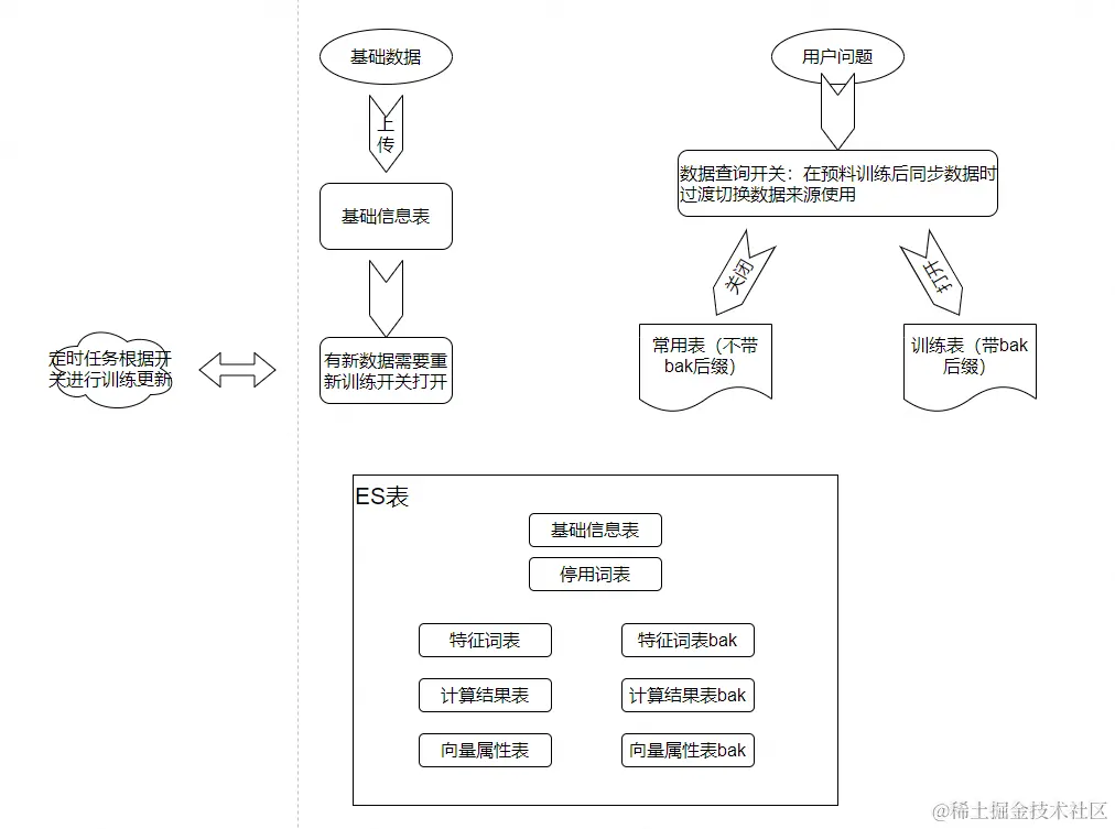 通过开关和双套数据模型设计支持在线语料训练与检索并行