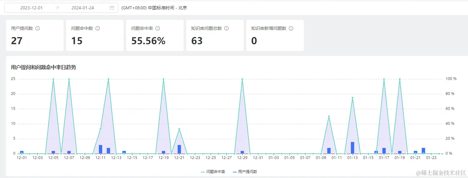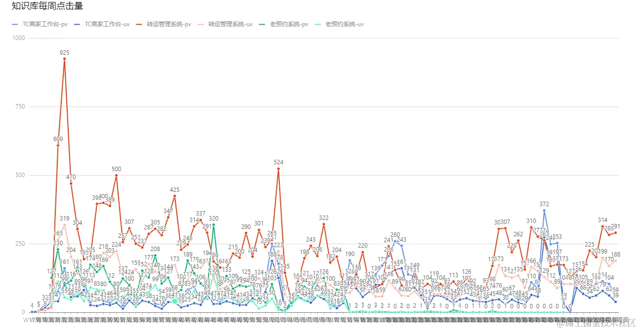 其实呢,说白了就是一个AOP切面的事情,一样的道理,但是这个效果确实有着显著的效果,通过下图中的知识库埋点点击数据可看到确实有人在使用,而本文最开始的IT单量统计折线图确实能够看到目前每周单量维持在20左右,相比最初的150、中间阶段的90上下,确实整体下降量非常明显