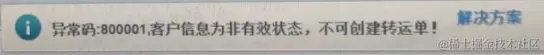 实操同步交互的业务异常拦截方式:在提示业务异常的同时,会在对应的提示信息后边跟着一个上下跳动的“解决方案”字样(为了吸引注意让使用者去点击)