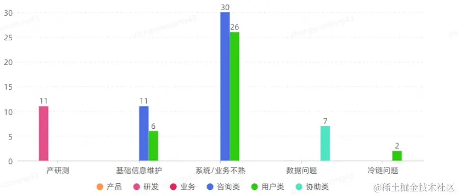 基于上述两种方案的经历后,日常值班和IT单的类型占比就大头的就是一些偏向咨询和实操类的工单了,挑选治理期间其中一周明细进行二次分析,其分布图如下