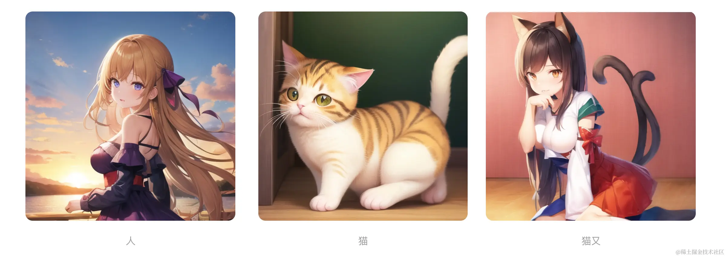 如果说checkpoint是一本大字典,那Embeddings就像是字典里面的一片小书签,它能够精准的指向个别字、词的含义,从而提供一个极其高效的索引。这种索引方式,除了能帮AI更好地画好字典里已经有的东西以外,有时候也可以帮我们实现特定形象的呈现。比如:我们想让AI画一只“猫又”,字典里虽然没有直接记载猫又这种比较偏僻的概念,但它知道“猫”怎么画、知道“人”怎么画,也可能知道“妖怪”怎么画,那我们就在字典上记有这些概念的页面里,分别夹上一片醒目的书签,那AI一听到“猫又”,就直接翻到这几页,把里面的信息汇总到一起,就知道“猫又”是个什么东西了。