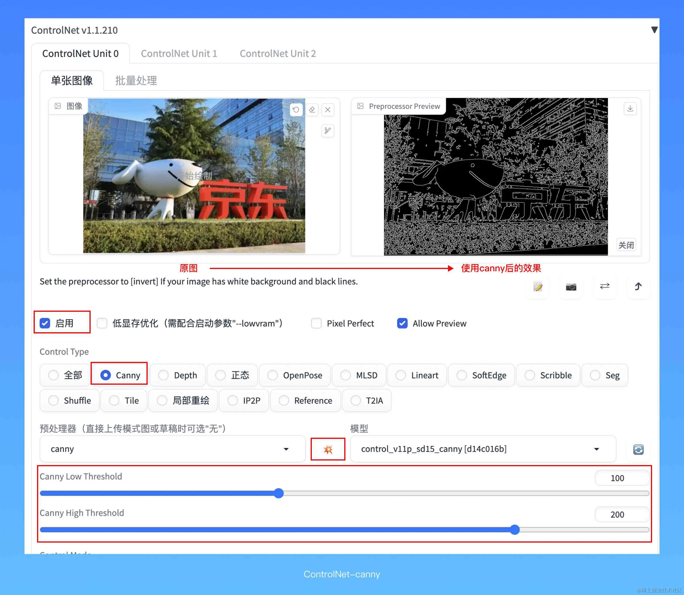 目前有很多做ControlNet的模型,这里结合一开始的案例介绍一下Canny。