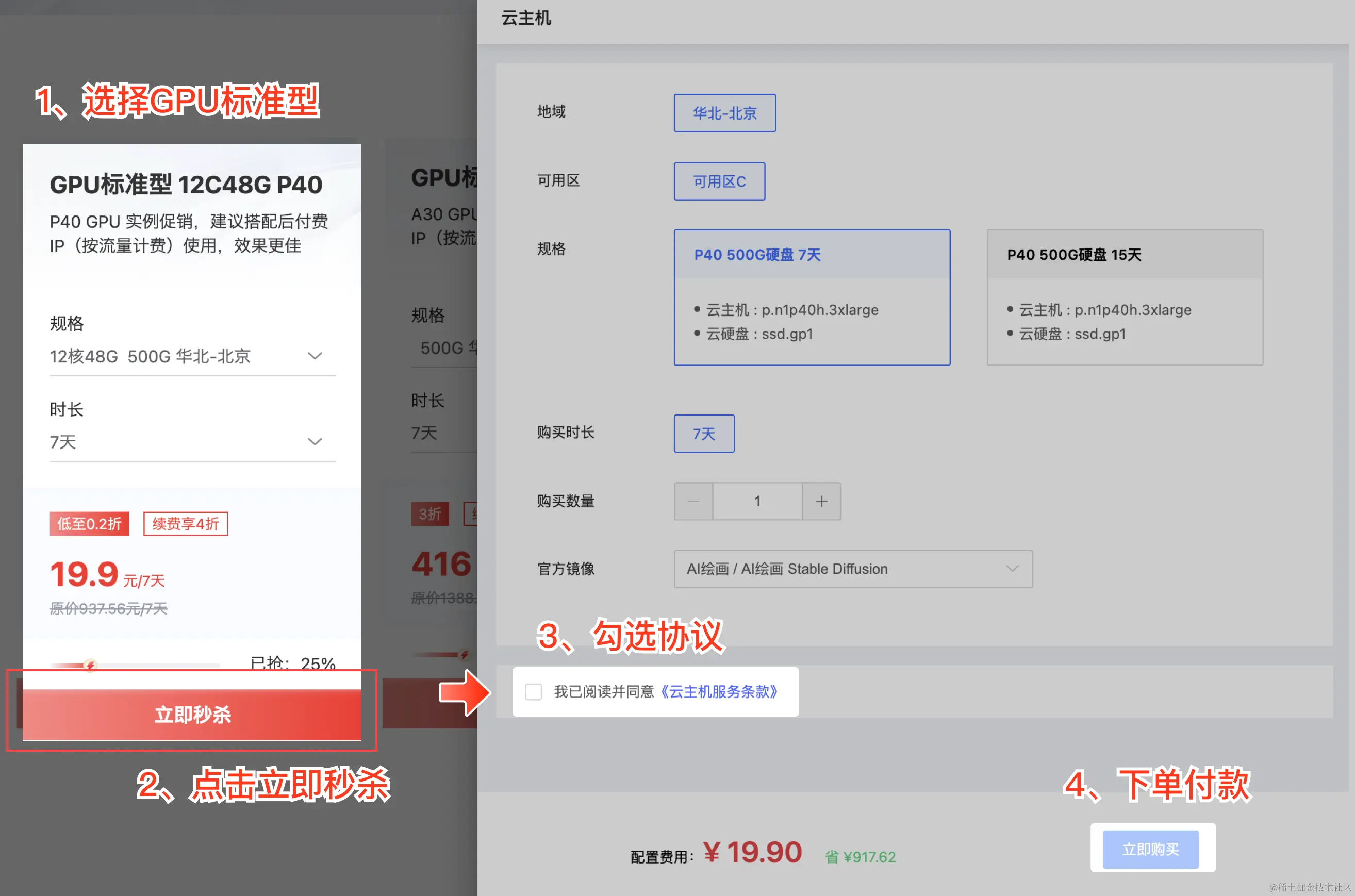 购买方式非常简单,在京东云官网下单后买GPU标准型(12C48G P40),现在购买立项新人19.9元/7天的1折体验价。