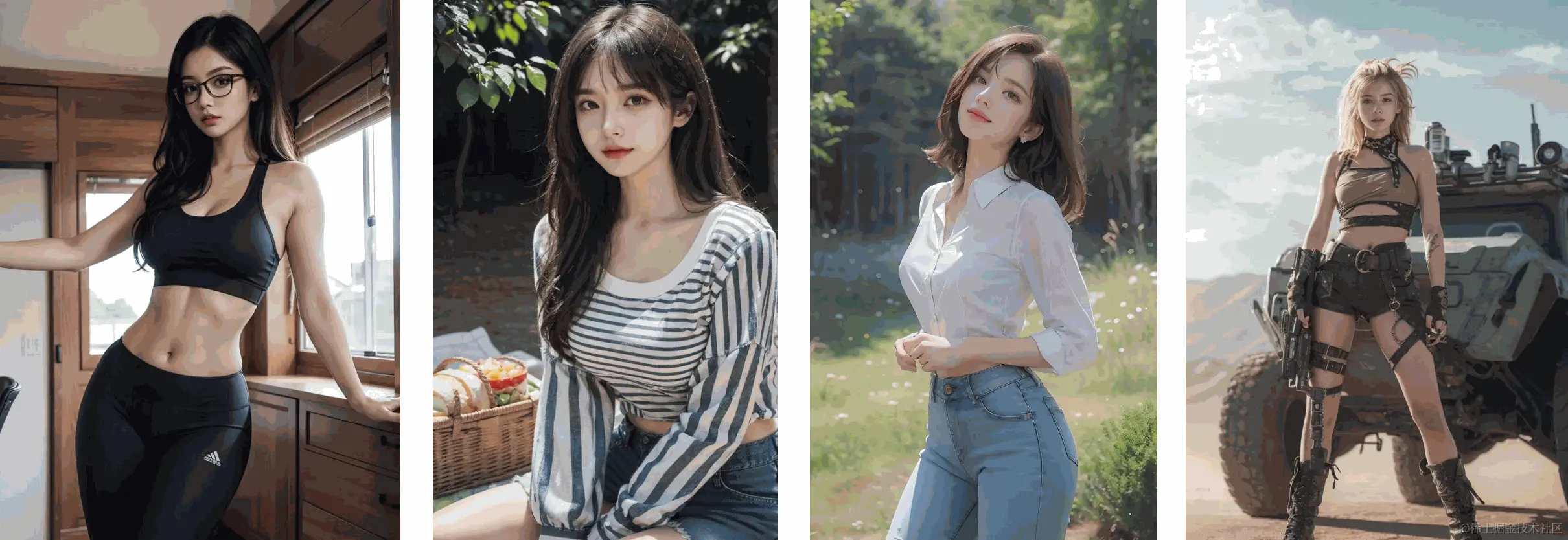 **(1)Lora 模型:**最近最火爆的模型,最大的特点就是几乎图像上的信息它都可以训练,并且还原度非常高。现在网络上流行的很多Ai真人绘图软件基本都是用的Lora模型。Lora模型主要用于固定图片风格,因为这类模型具备容易训练、对电脑配置要求低等特点,因此使用Lora训练的人更多。