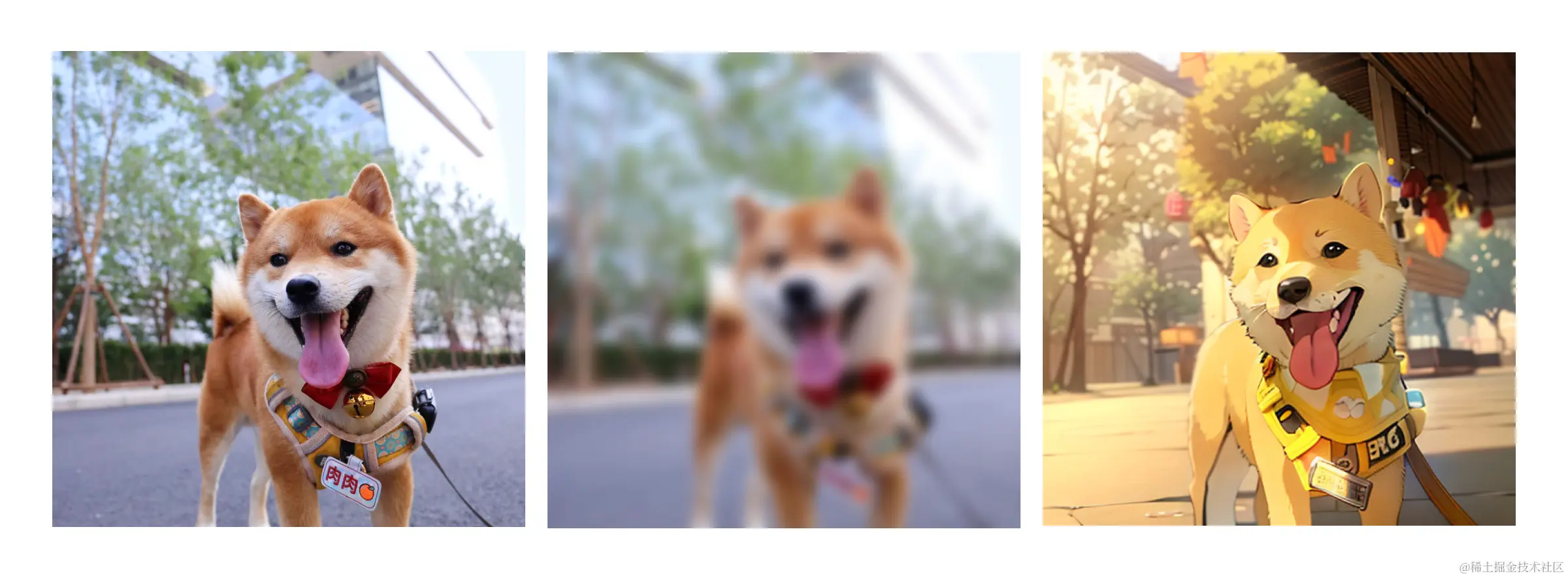 这是我家的傻狗,你可以将自己的角色带入到执行绘画指令的AI中,现在让你把这幅画用宫崎骏风格重新绘制一遍,你做得到吗?你可以尝试着把眼睛眯成一条缝去看它(如果你近视可以摘掉自己的眼镜),它是不是变得模糊了?保持这个状态,想象着它正在逐渐变成动漫里的样子,随后慢慢睁开眼睛……