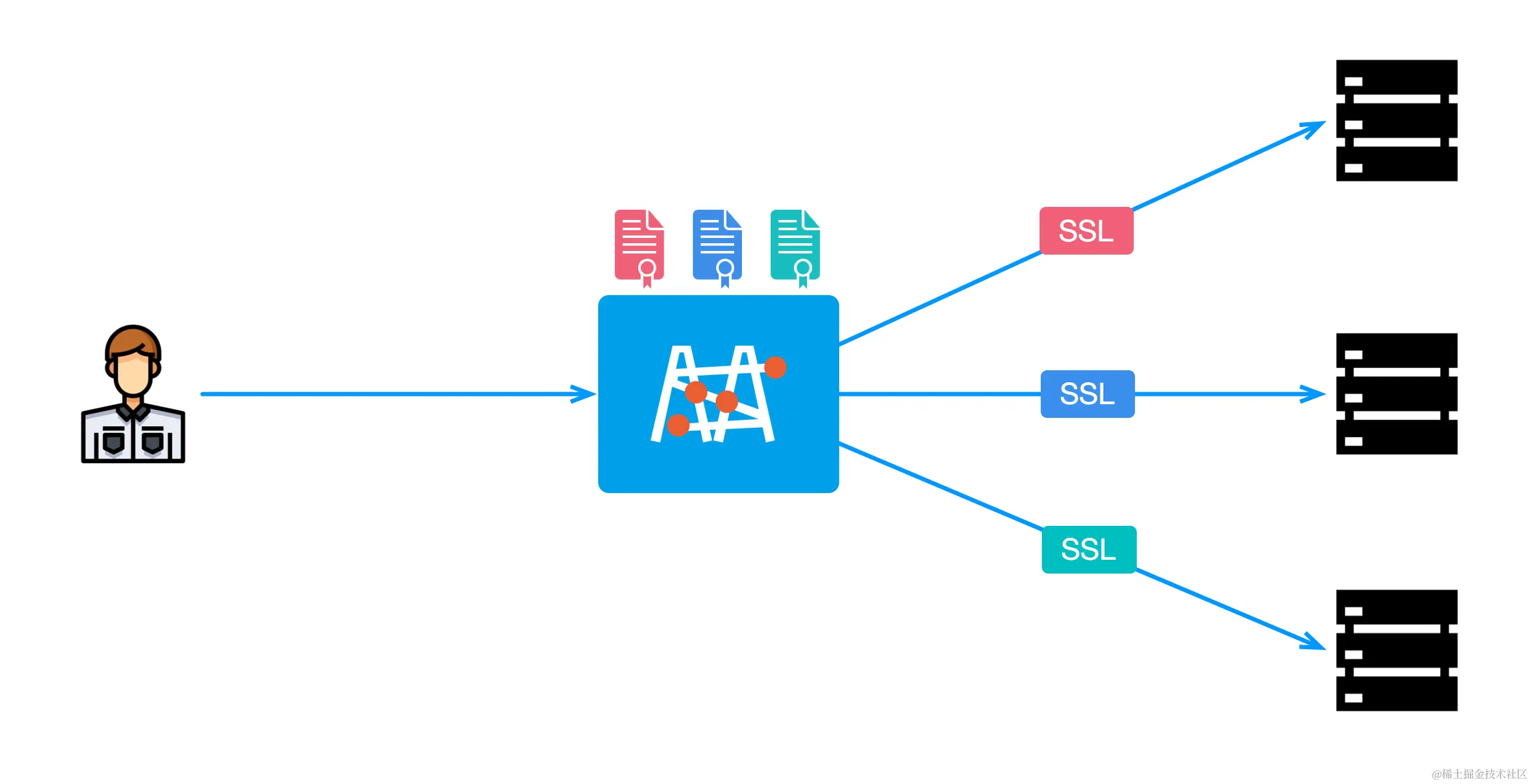 - 简化证书管理:所有的 SSL/TLS 证书都可以在网关处集中管理,而不需要在每个上游服务上单独配置和管理。这大大简化了证书的更新和管理工作,降低了出错的可能性。