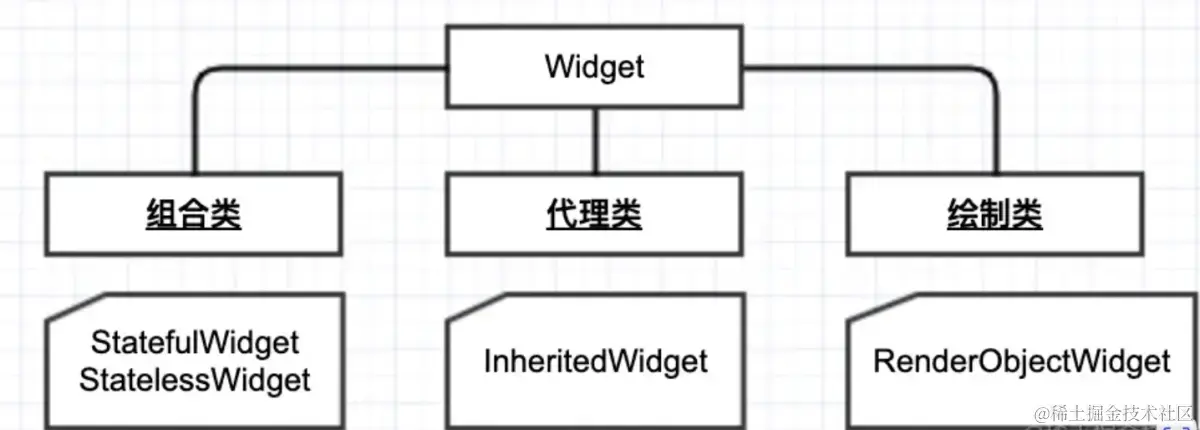 2). 代理类: 状态管理的,例如:InheritedWidget用于将一些状态信息传递给子孙Widget。