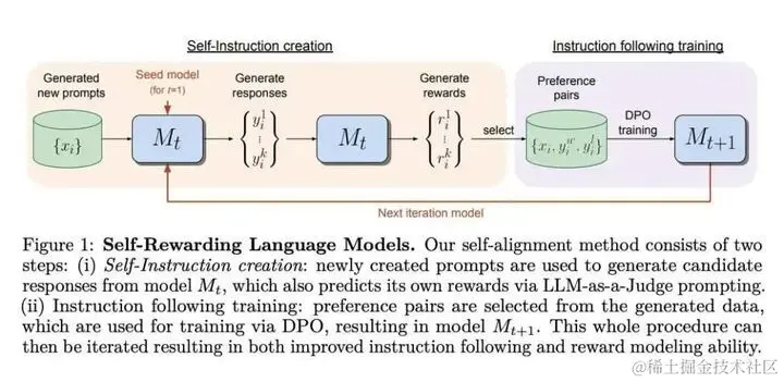 该方法涉及迭代训练,其中模型使用法学硕士作为法官的提示将奖励分配给自己的输出,从而生成基于偏好的指令数据。结果表明,这种训练提高了模型遵循指令的能力,并改进了其跨迭代的奖励建模。