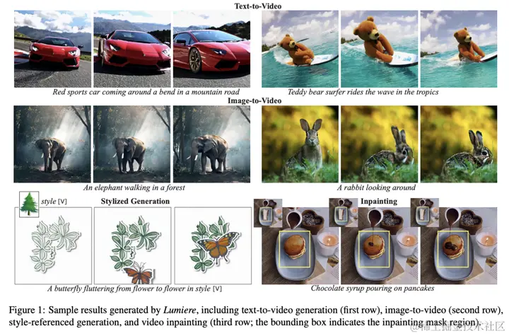 为了解决在合成视频中创建逼真、多样化和连贯的运动的挑战,谷歌提出了Lumiere,一种文本转视频模型,由魏茨曼研究所、特拉维夫大学和以色列理工学院合作开发。训练涉及时空 U-Net 架构,它一次性生成整个视频持续时间,这与使用远程关键帧和时间超分辨率的现有模型不同。