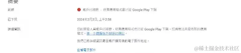 你的开发人员账户已移除,所有应用程序已从GooglePlay下架,您将无法再发布新的应用程式。