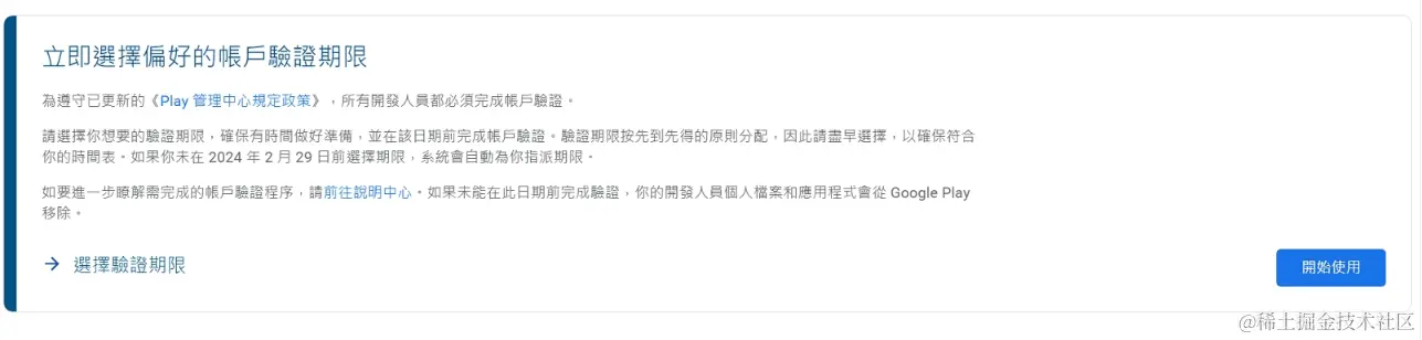 2023年10月开始,Google Play开始正式逐步施行此前的政策通告,并向历史开发者账号发送一则邮件,要求在2024年2月29日前选择截止期限完成账户验证,否则谷歌将会自动为开发者选择截止期限。