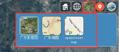 备注:这里的imagerProviderViewModels参数要是不设置的话,默认会自动创建一组在线地图底图服务的数据源,假如想要配置一些自己服务器发布的地图服务的话,应该自己设置一组地图服务数据源来替换;